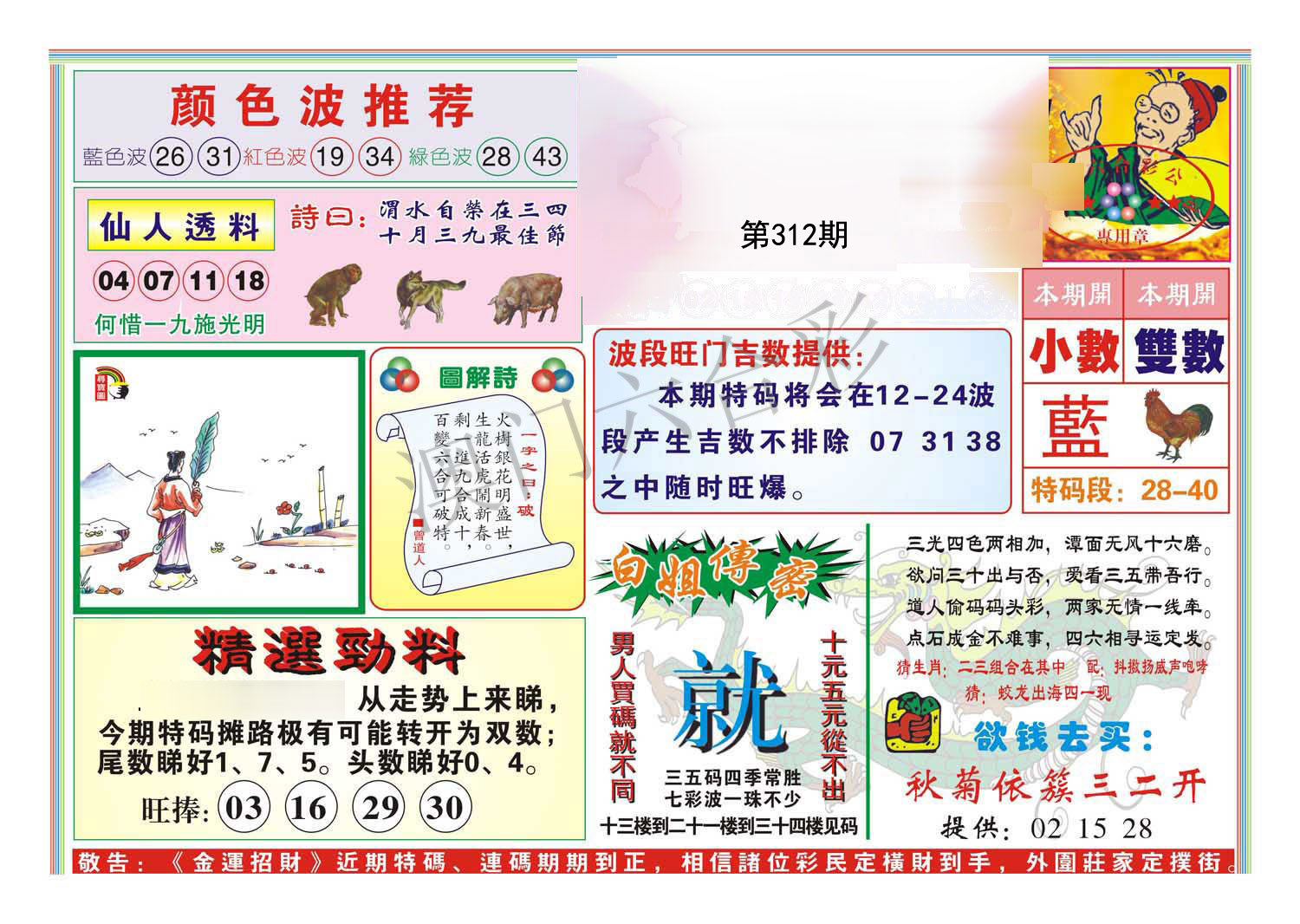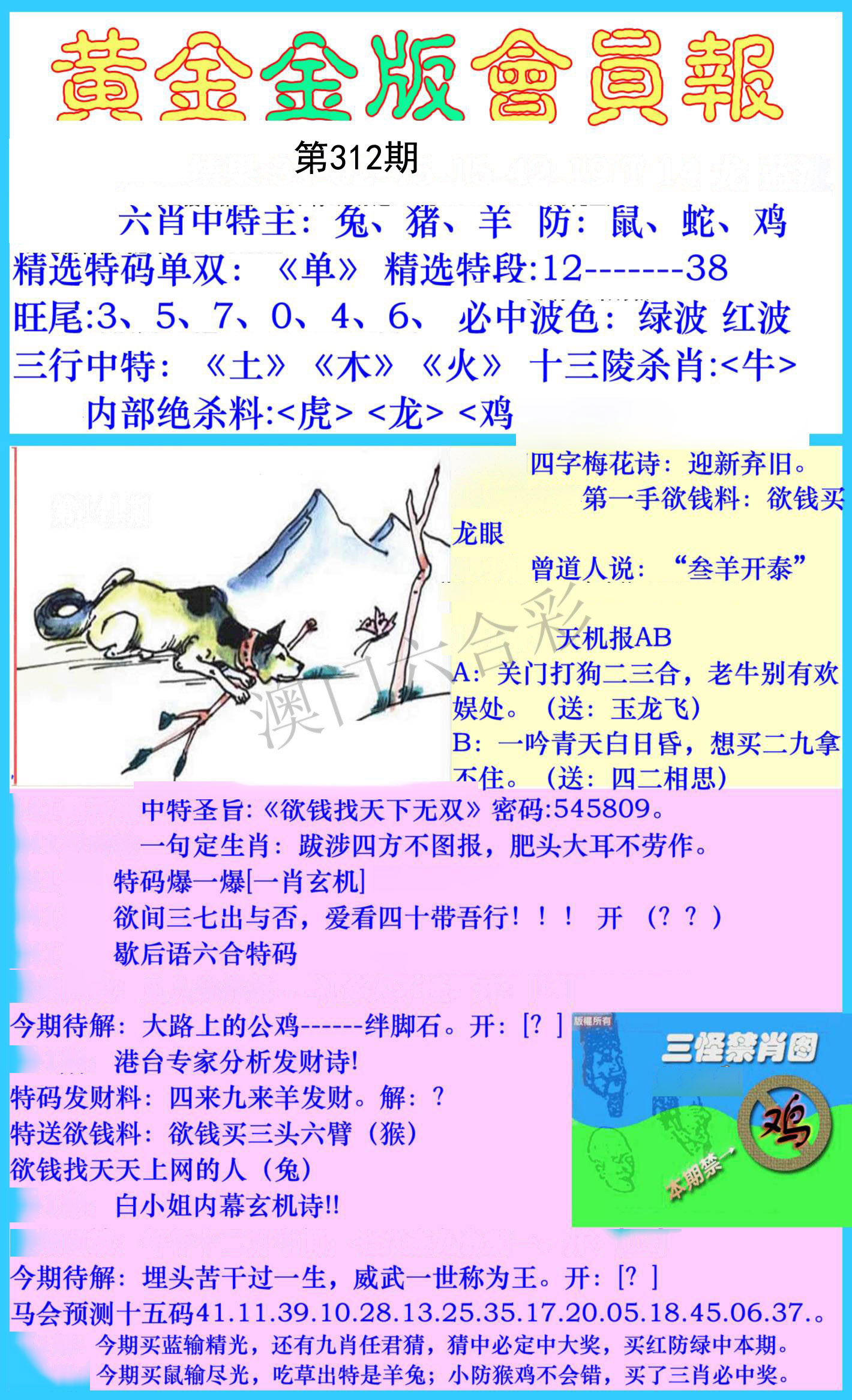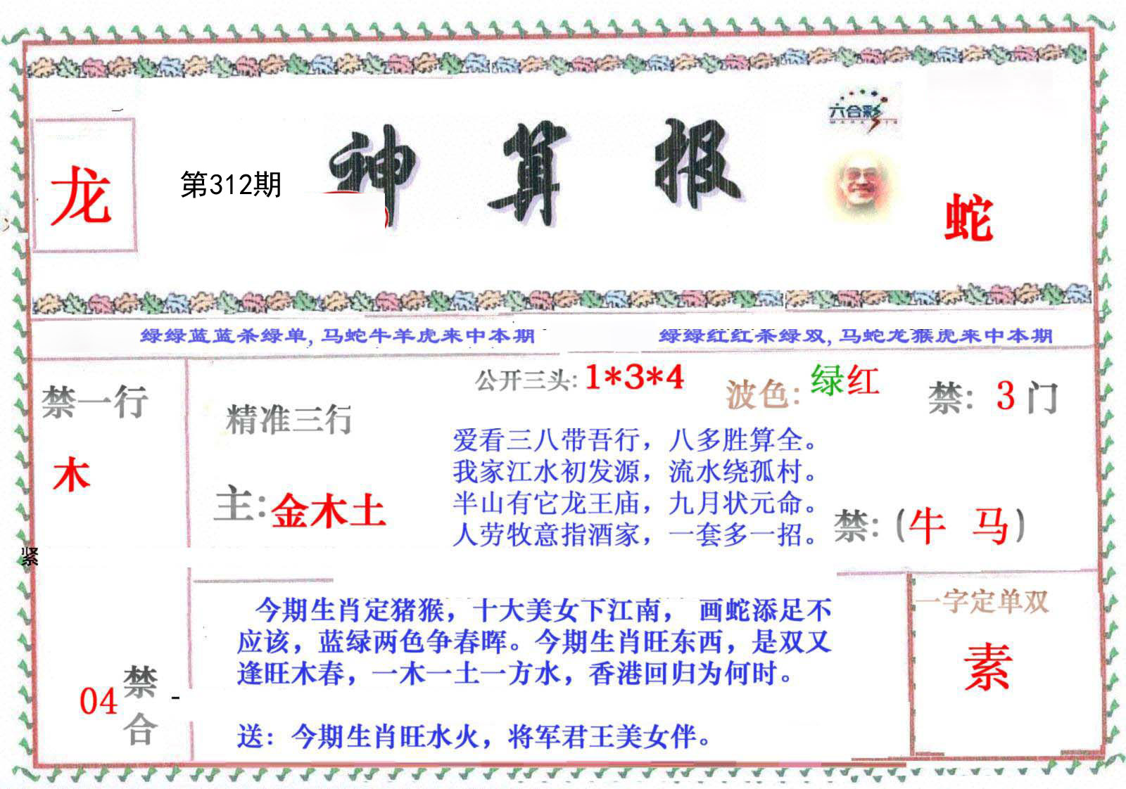 312期绝杀1.肖1.尾 【羊肖3尾】 开 ??????? |
