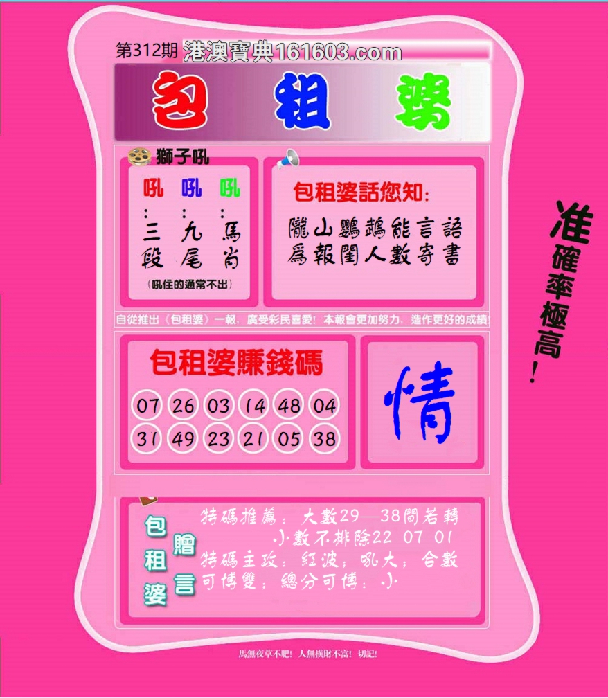 | 312期推荐七肖: 虎马龙兔猴牛猪 -平均压 |